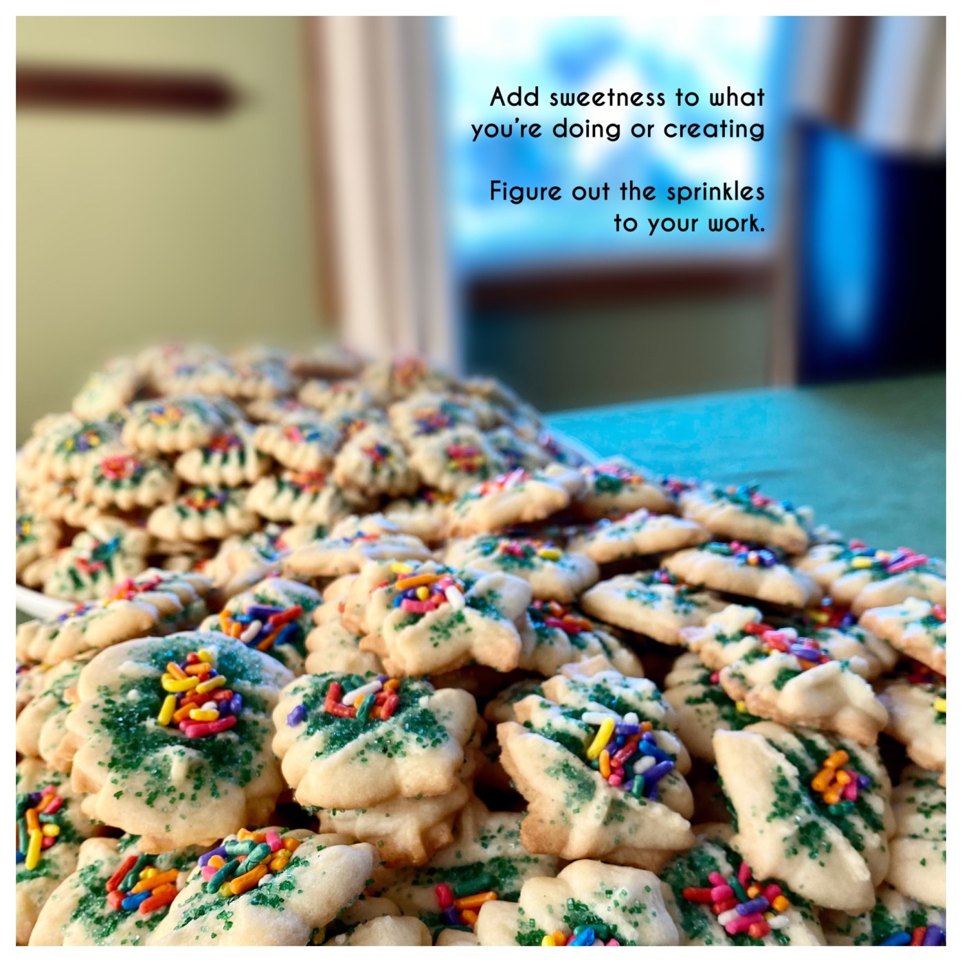 Sprinkles are the surprise and delight to the project. They aren’t needed but when you can find a way to make someone smile, you should do that. Figure out the sprinkles to your work. The sprinkles to your chores. To your errands. To your responsibilities. If possible, also wear a goofy hat.